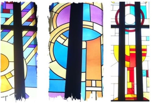 Betritt man die Kirche, steht man in einem schlichten aber weiten Raum, der an sonnigen Tagen von einem warmen Licht durchflutet wird. Das Thema des Kirchenportals wird in den expressionistisch gestalteten Fenstern wieder aufgegriffen. Die eingangs erwähnten „göttlichen Tugenden“ werden durch Aussagen zu den Sakramenten der Kirche und weitere Symbole des Glaubens ergänzt.